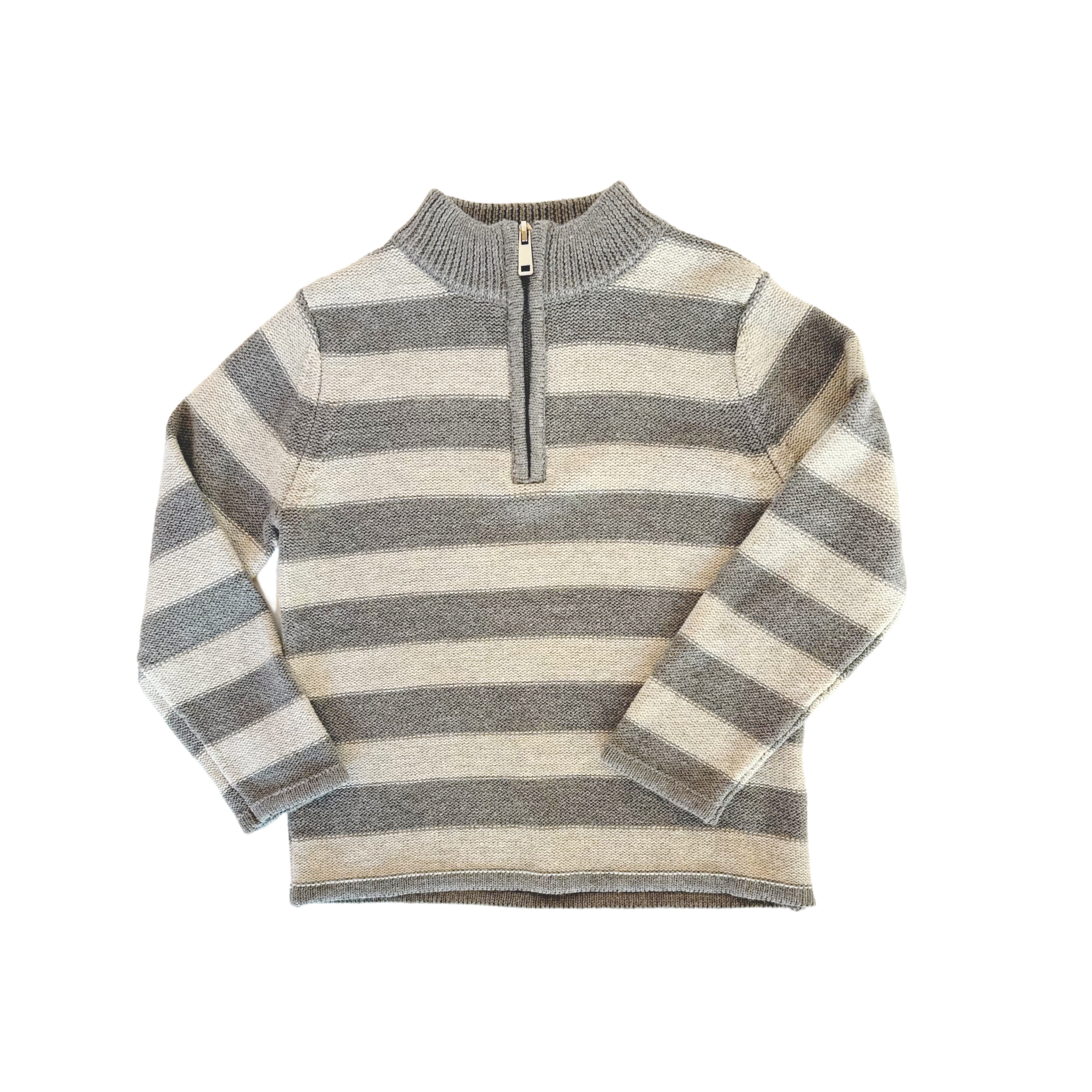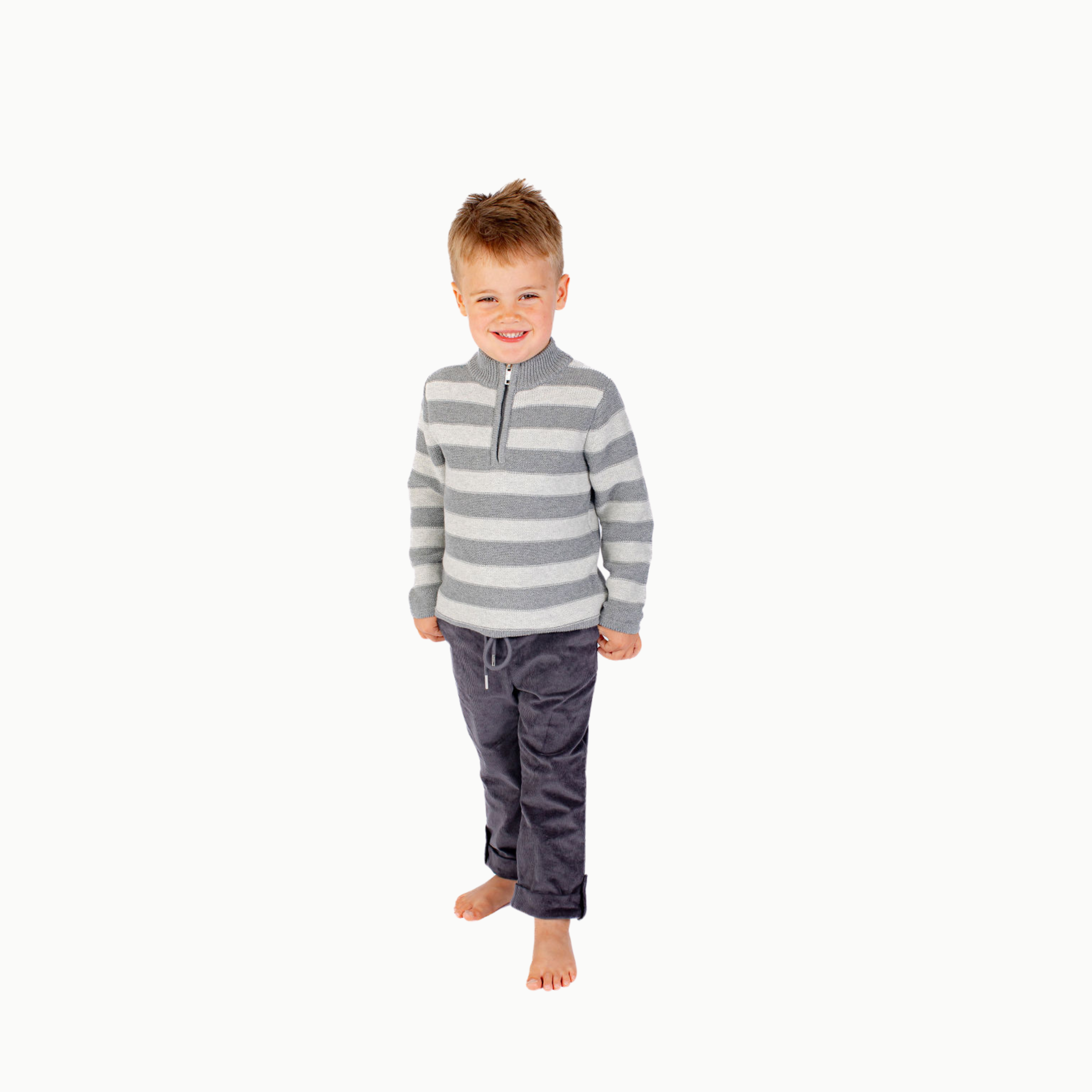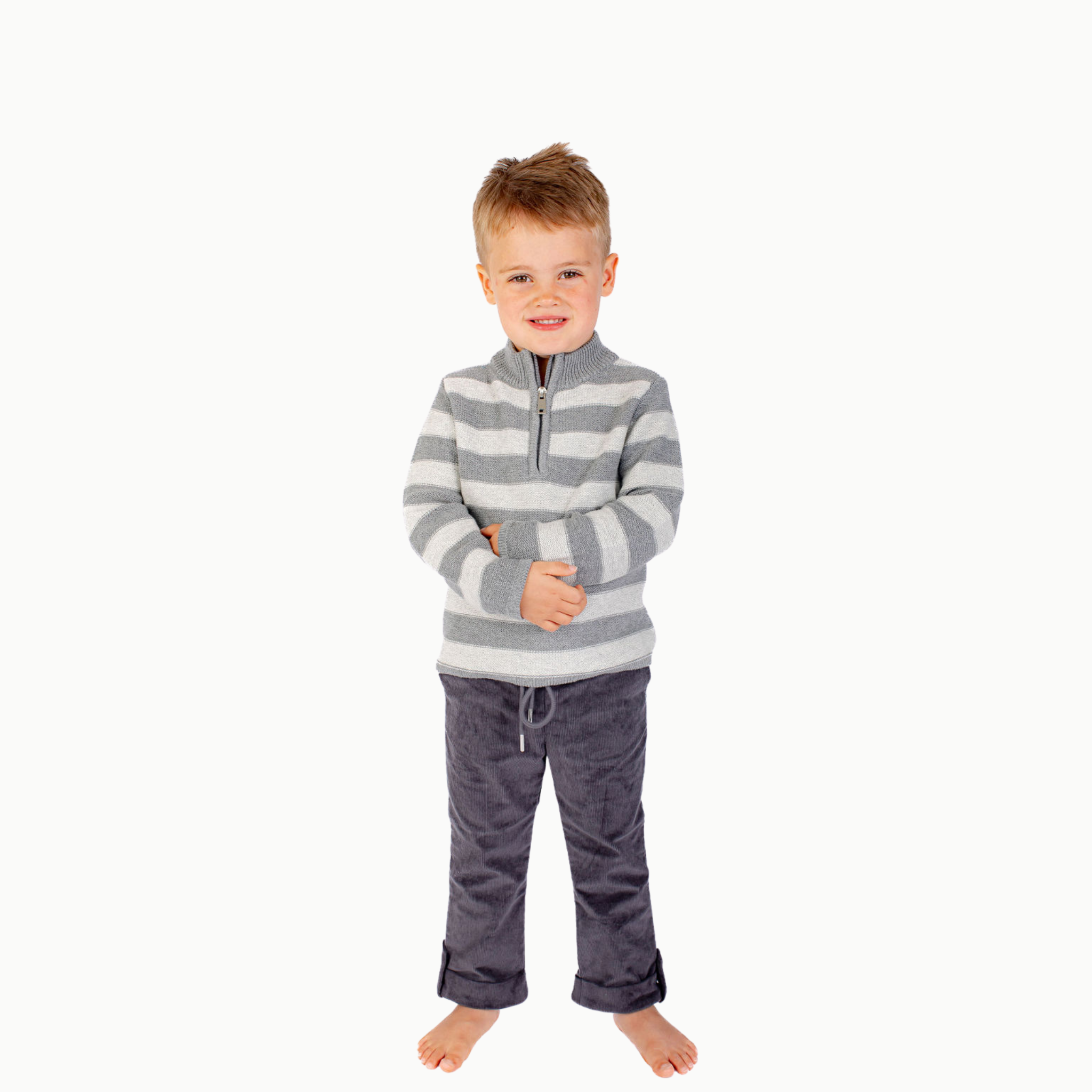 Perfect for the cooler weather, our Boy's Half Zip Sweater features a ribbed collar and contrasting stripes to make this the perfect top to pair with our Corduroy Cuff Pants and Dino Trousers.