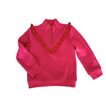 Our Girls' Half Zip is the perfect all-day layering option for your little one. This comfy closet essential features ribbing at the collar, cuff, and waist along with a contrasting ruffle to add a little bit of fun.
