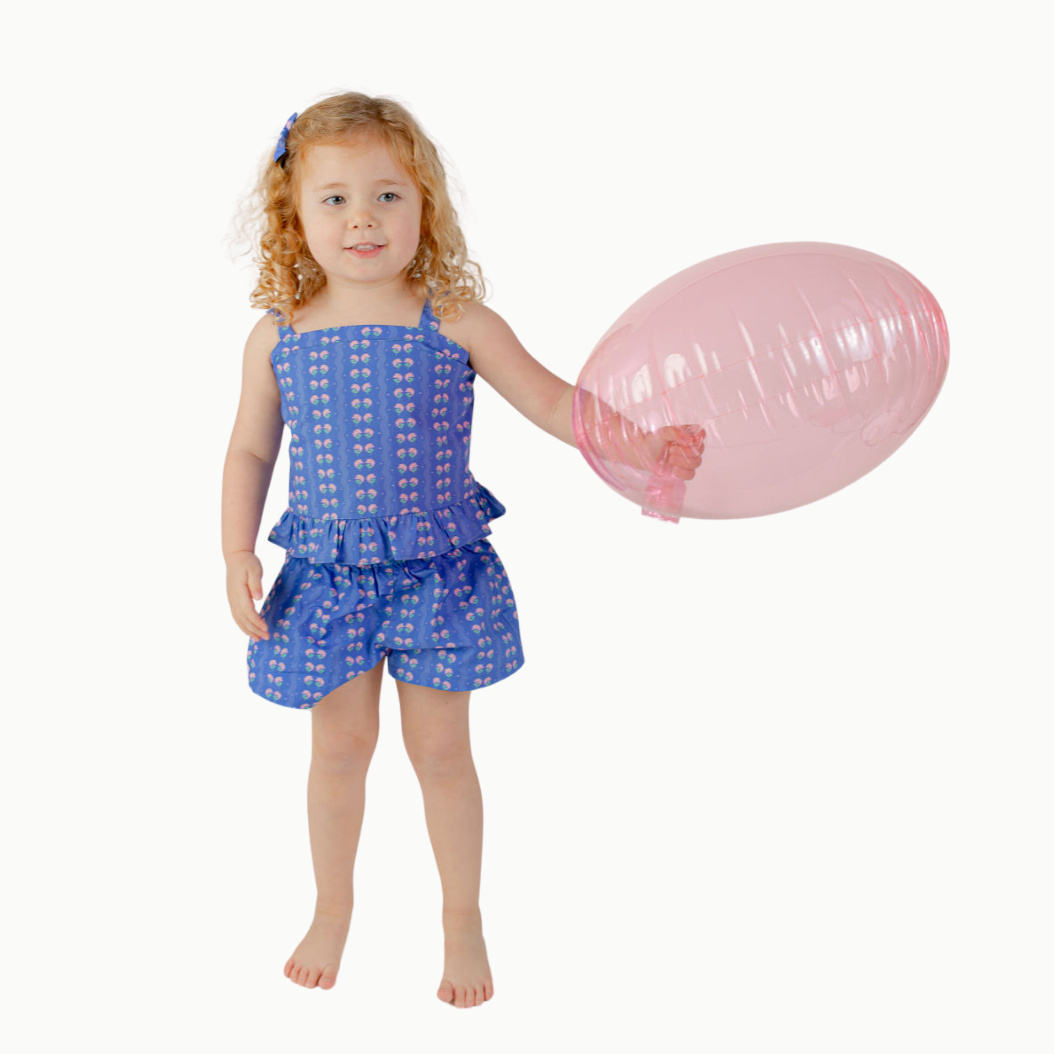 We bought this shirt with the matching skirt and love it so much. It is the cutest beach print. I love the details and the little ruffle. The snaps on the back make it easy to get on and off. Love it! I didn’t get a great picture from the front because my daughter was refusing, but here is a picture from the back. So cute!