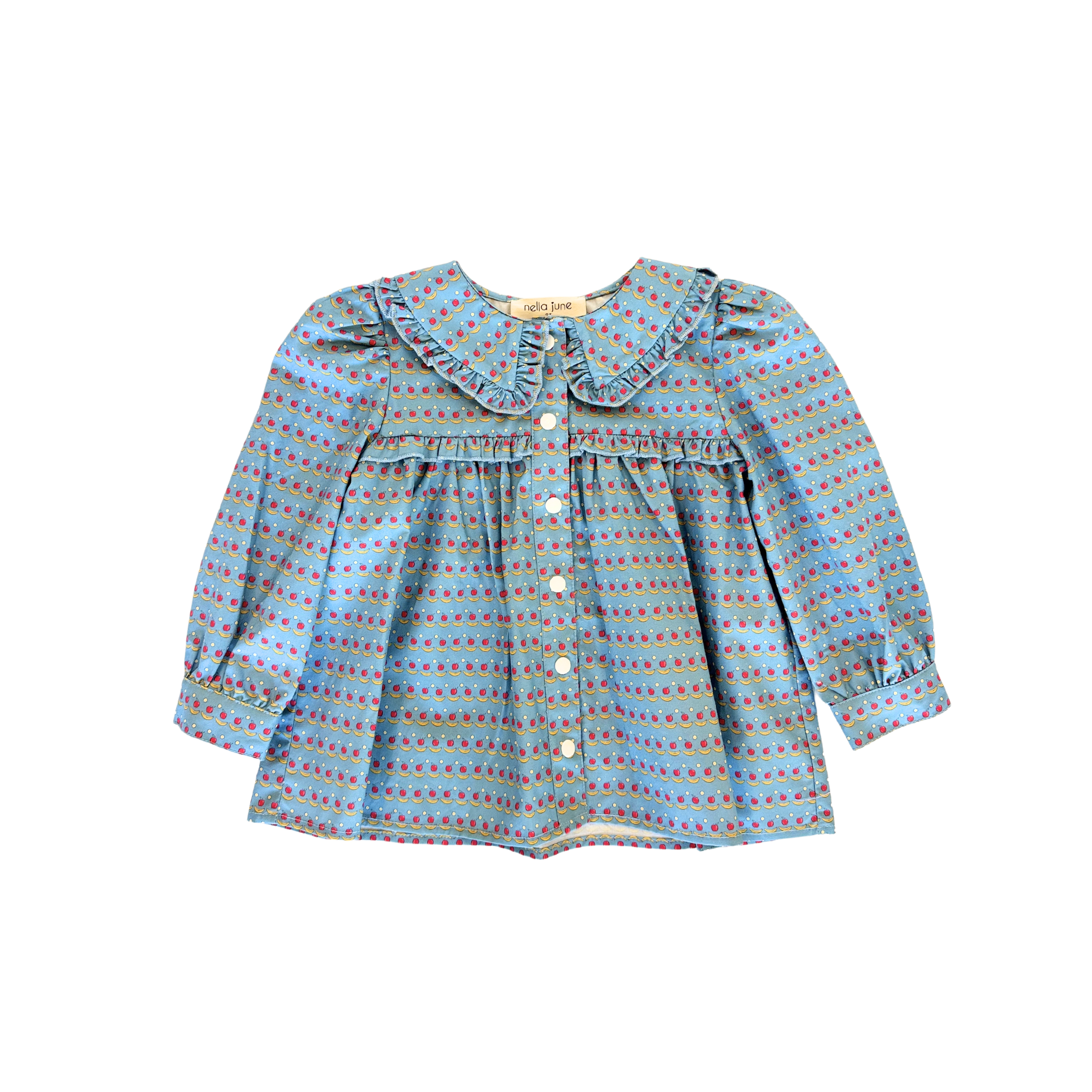 Ruffle Trim Blouse in Apples & Bananas