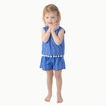 We bought this shirt with the matching skirt and love it so much. It is the cutest beach print. I love the details and the little ruffle. The snaps on the back make it easy to get on and off. Love it! I didn’t get a great picture from the front because my daughter was refusing, but here is a picture from the back. So cute!