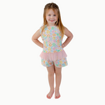 We bought this shirt with the matching skirt and love it so much. It is the cutest beach print. I love the details and the little ruffle. The snaps on the back make it easy to get on and off. Love it! I didn’t get a great picture from the front because my daughter was refusing, but here is a picture from the back. So cute!